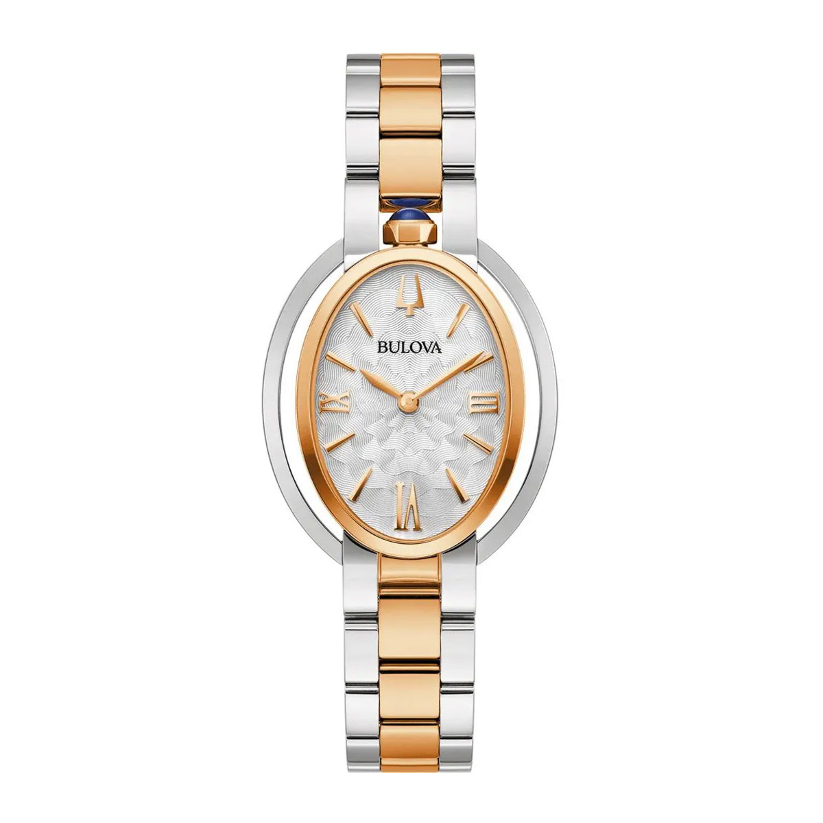 This Bulova watch has a case made of stainless steel with a diameter of 28 mm and is fitted with a metal band. Inside the case lies a Miyota movement and the watch features a Sapphire crystal.