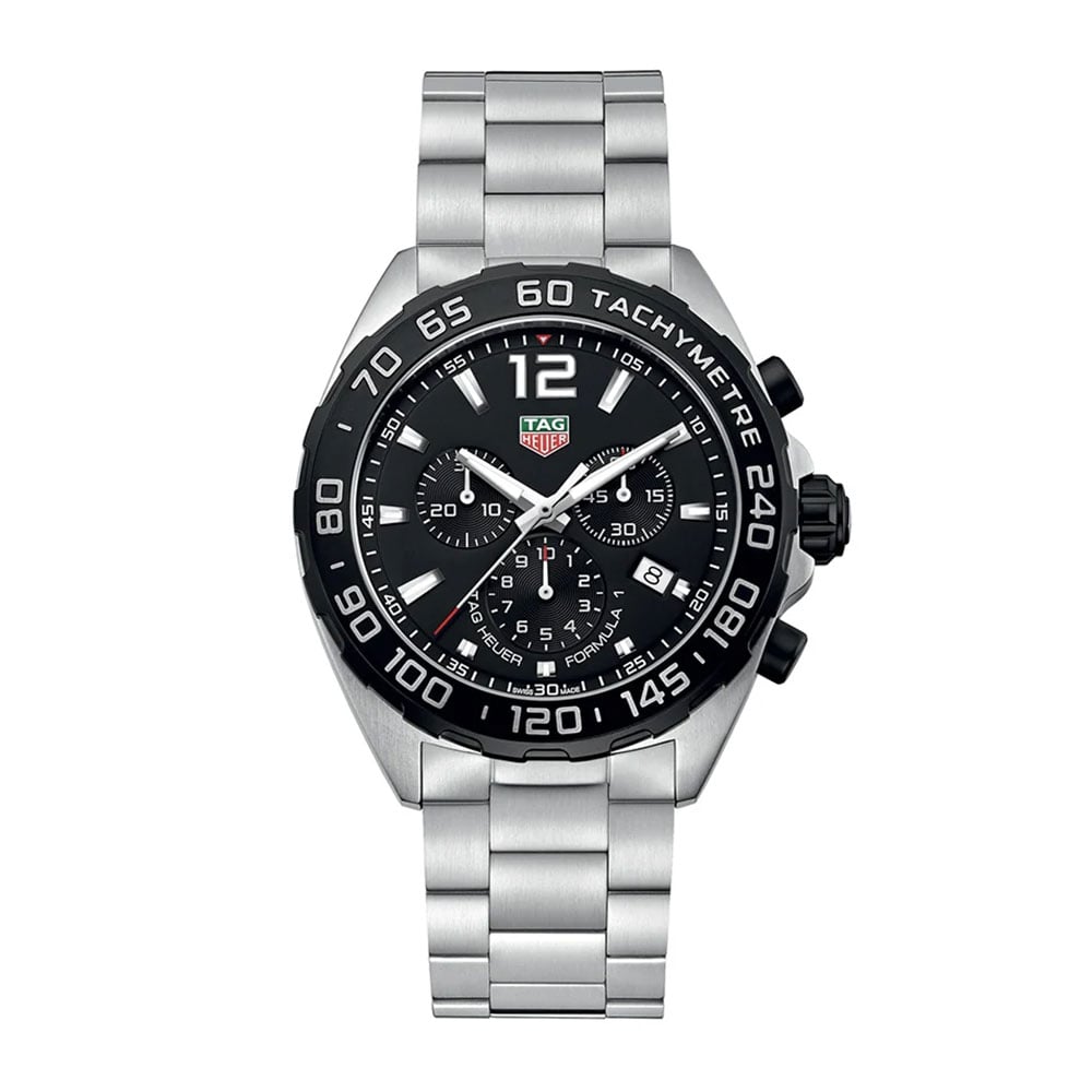 TAG Heuer Formula 1 Quartz Chronograph Fine-brushed, polished steel case Fine-brushed steel bezel coated with black PVD Fine-brushed steel bracelet Black dial, 43 mm