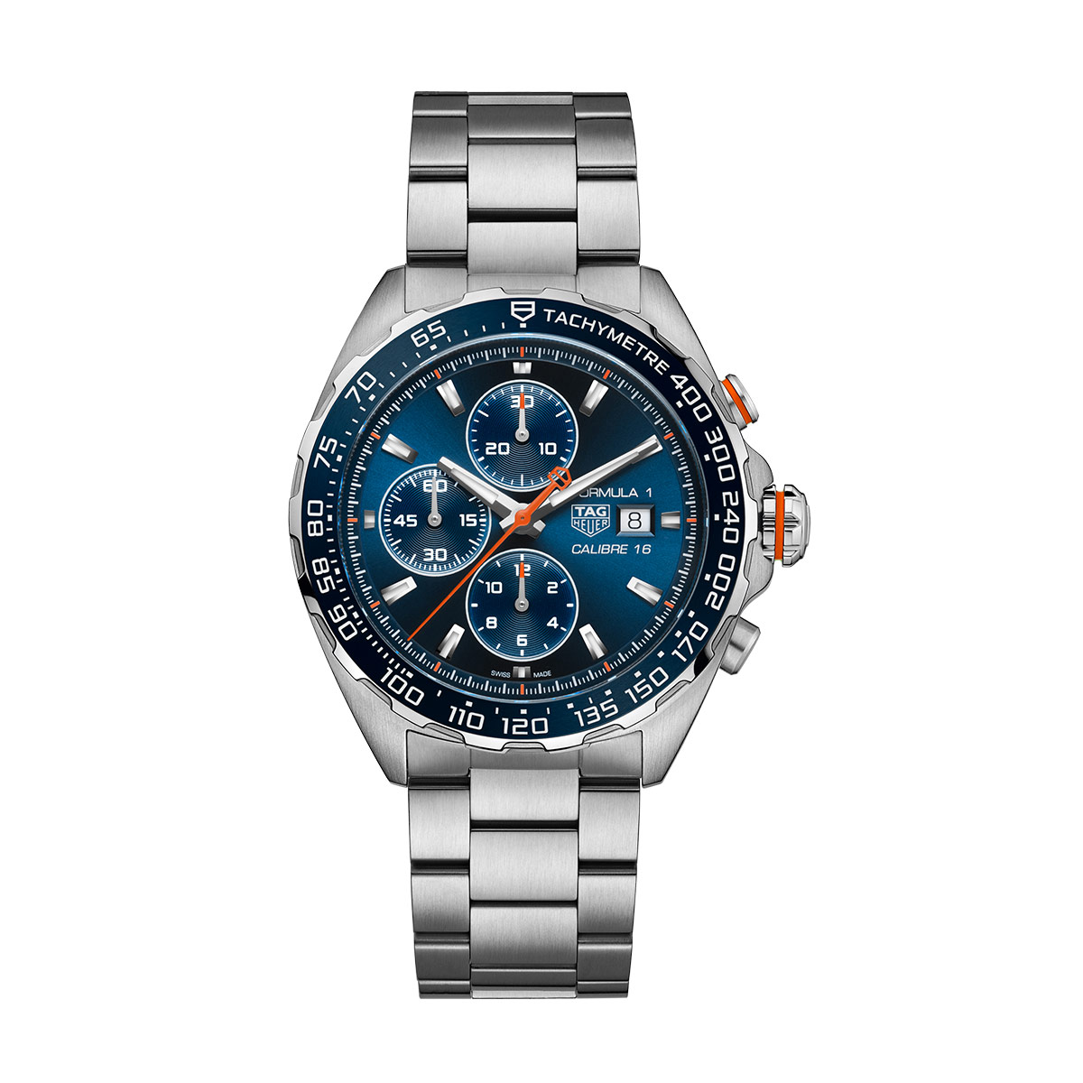 For gentleman drivers craving elegance with a sporty edge, this TAG Heuer Formula 1 chronograph is your go-to timepiece. Distilling an energetic look with its vivid orange highlights, this 44 mm watch is the perfect match for speed lovers