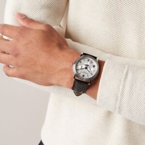 The watches in the Business Timer collection feature a quartz calibre complete with day, date, week number and moon phase. Easy to adjust and read, the Classics Index Business Timer features a 40mm-diameter stainless steel or rose gold-plated case.