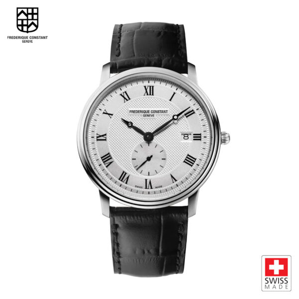 The case offers a 39mm diameter. The watch is powered by the FC-245 quartz caliber, is water-resistant up to 30 meters and each model is distinguished by a dial with guilloch? decoration, roman numerals, hand-polished hands, and a small second?s counter at 6 o?clock.