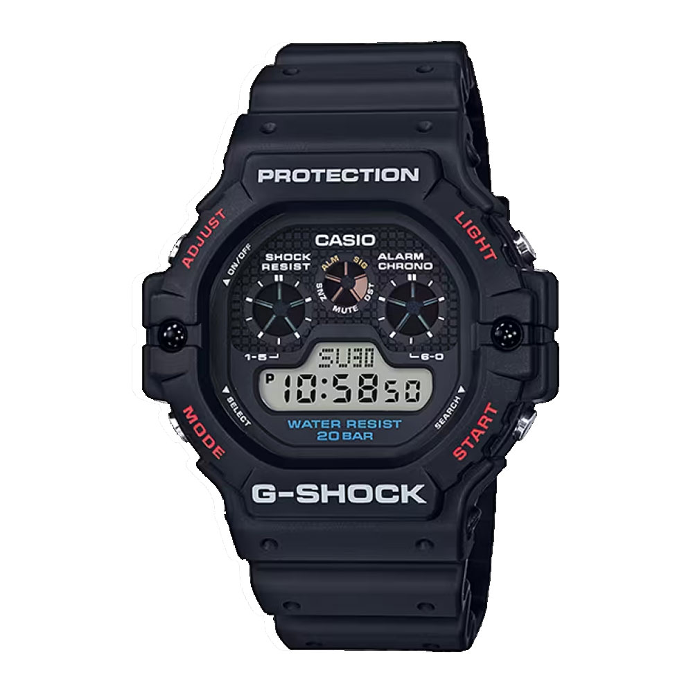 This historical favorite model revived for the modern day was based on the theme of “back to basics” to commemorate the 35th anniversary of G-SHOCK in 2018. nA basic digital model from the early days of G-SHOCK equipped with three new digital graphics not found in the conventional LCD models, the DW-5900C was first released outside Japan and gained worldwide popularity, before breaking into Japan via reimporting. The original design has been faithfully reproduced, right down to the color of the text on the dial. Furthermore, in addition to the basic stopwatch and timer features, it also has practical functions such as an EL backlight. nIt is a revival model of the long-selling DW-6900 series that used three digital graphics.