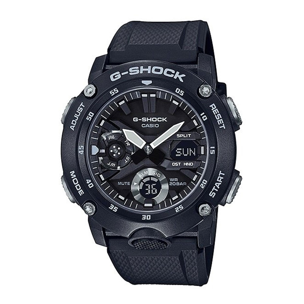 A GA-2000 series model from G-SHOCK, the toughness watches that continue to evolve in search of ultimate strength. nA monotone color scheme. The simple color scheme emphasizes the shape of the watch itself, which is designed to be customized using replacement bands (sold separately). nA G-SHOCK that fuses design with an shock-proof carbon core guard structure that uses a carbon case to protect the module.