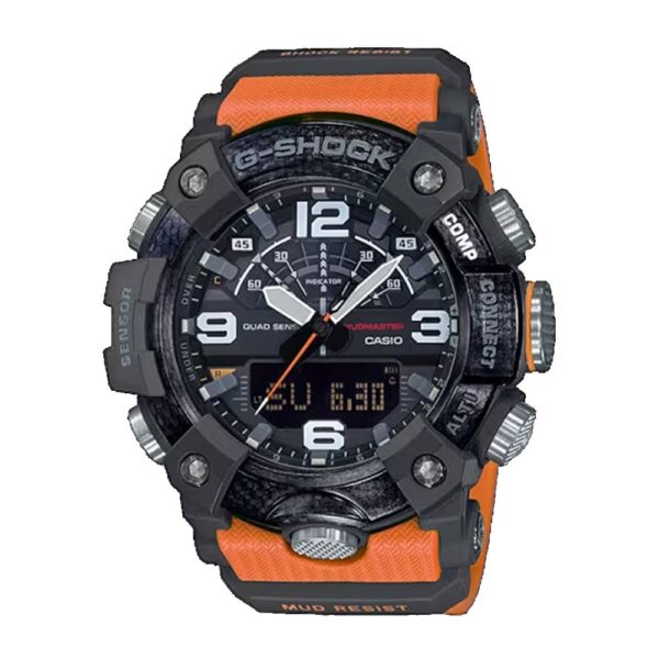 This is a model from the G-Shock Mudmaster Series, designed for use in extreme environments scattered with rubble, dirt and debris, and uses carbon materials.