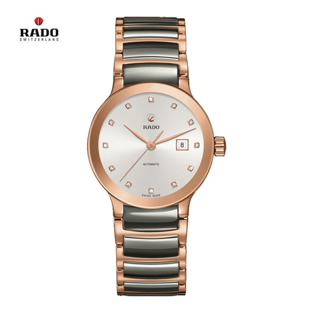 The Rado Centrix Automatic Diamonds proves its versatility in a range of different sizes and colour combinations, all with the glamorous sparkle of diamonds on the dial, guaranteeing that there is a model to suit all tastes. With Rados signature sapphire crystal adding scratch-resistant shine, these watches are designed to look good for life.