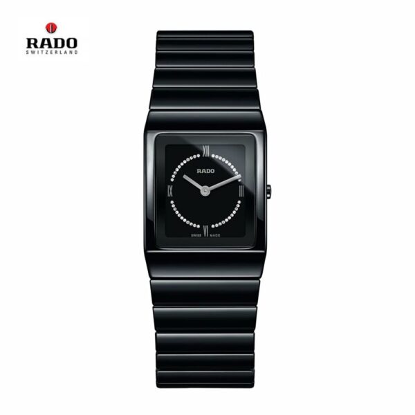 Rado Ceramica Diamonds 22.9 x 31.7 mm watch. Model reference: R21702732 or 01.420.0702.3.073. High-tech ceramic case. Black dial set with diamonds. Quartz movement. High-tech ceramic bracelet. Swiss made. Watch comes in the original packaging, with a set of documents and 5 years warranty. At Watches of Mayfair we offer new authentic watches at the best prices.