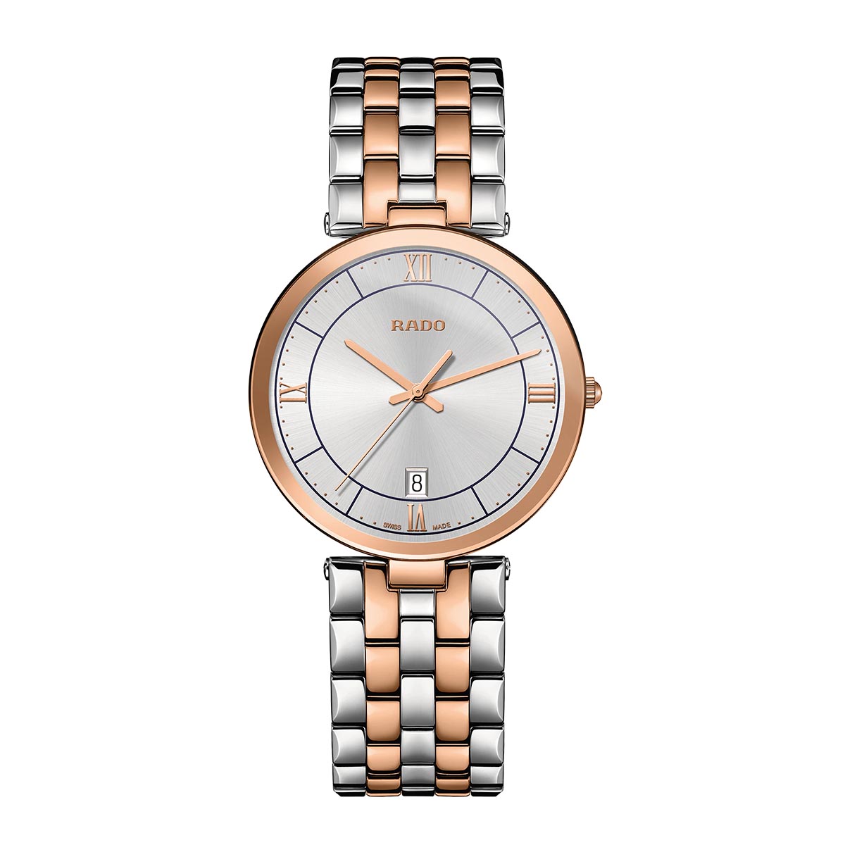 Rado Florence Classic R48869103 A sophisticated gents quartz watch with a 38mm stainless steel two-tone case and bracelet. It features a silver dial with refined detailing, protected by sapphire crystal. Water resistant to 30m and backed by a 2-year warranty.