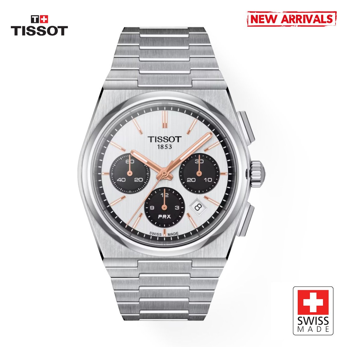 Created for those with an eye for design and packed with twenty-first century features in a Tissot case shape from 1978, the PRX Chrono is a must-have on every watch fans wish list. This 42mm satin-finished steel watch follows the PRXs sleek, angular form, adding to the laid-back 1970s sports watch style with a panda dial. The PRX Chrono is powered by the Valjoux A05.H31 caliber, which provides the design with the classic 3, 6 and 9 chronograph dial layout and an extended 60-hour power reserve.
