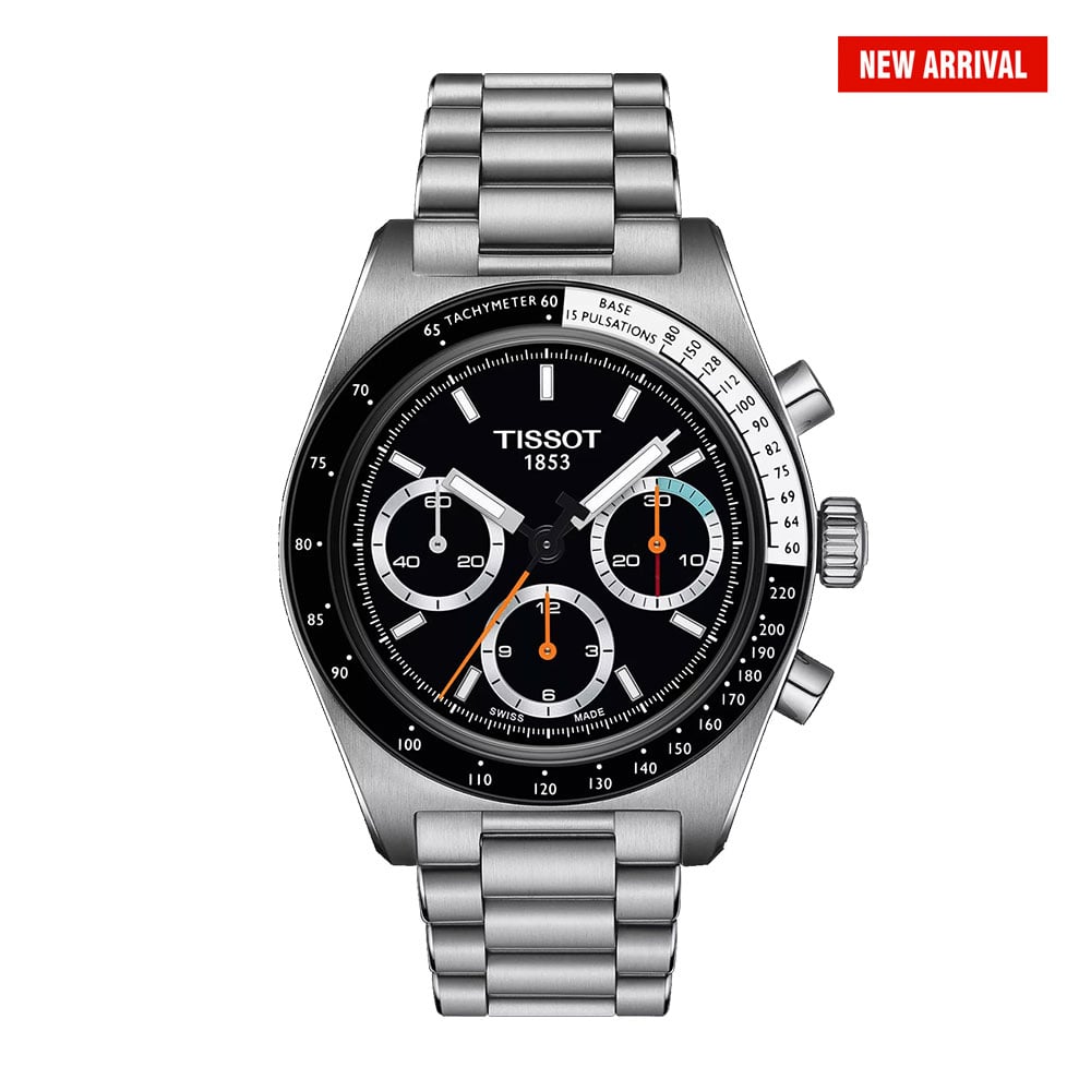 The Tissot PR516 Chronograph Mechanical: a nod to Tissot’s distinguished 1970 model. Crafted with a 41mm stainless steel case and a glassbox-style sapphire crystal, this watch is a testament to sophisticated craftsmanship. At its heart lies a Swiss manual winding movement, visible through the open caseback, showcasing the intricate mechanics. The dial, featuring Super-LumiNova??-coated indices and hands, ensures readability in any setting. A tachymeter on the bezel adds a touch of functionality. Its versatile design is complemented by a domed stainless steel bracelet with a quick interchangeable system, perfect for transitioning from business meetings to casual outings. The PR516 Chronograph Mechanical is an exquisite piece for watch connoisseurs who appreciate timeless design and mechanical precision.