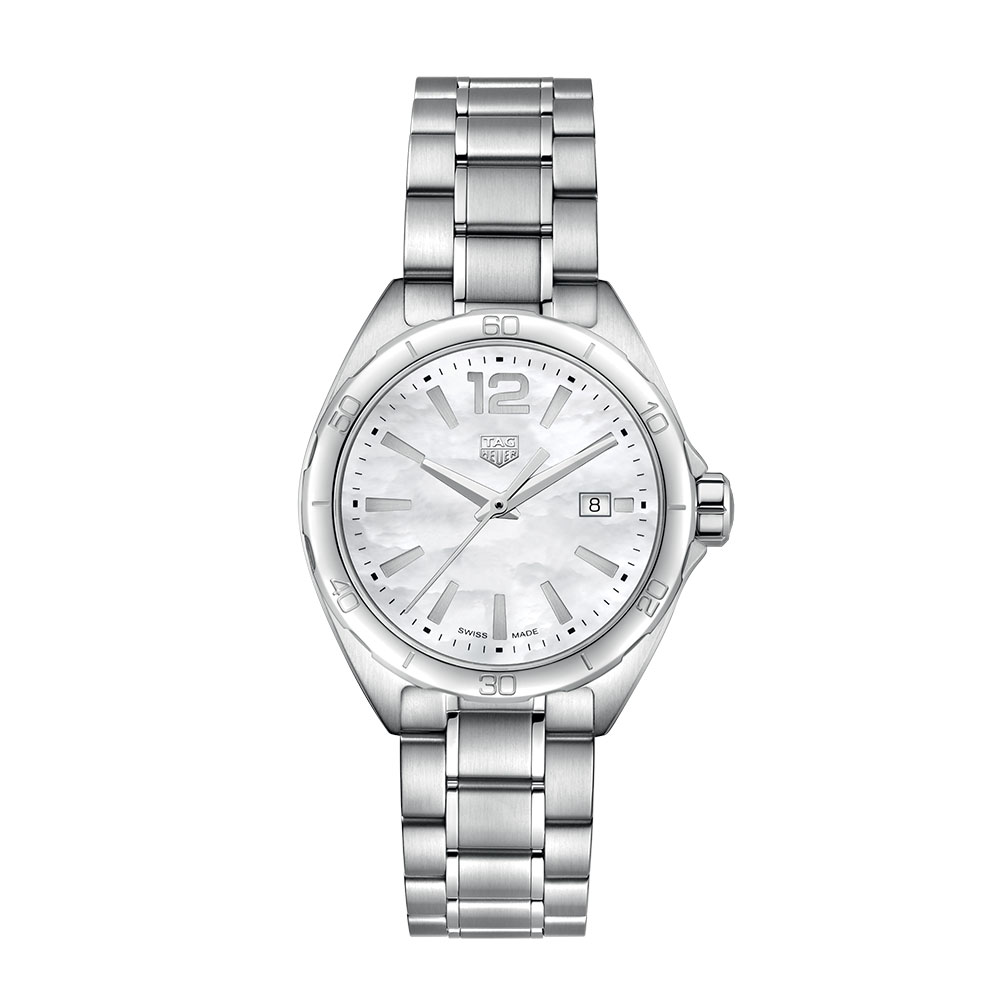 Tag Heuer Womens Formula 1 Silver Stainless Steel Case Quartz White Mother of Pearl Dial Silver Stainless Steel Bracelet Watch.