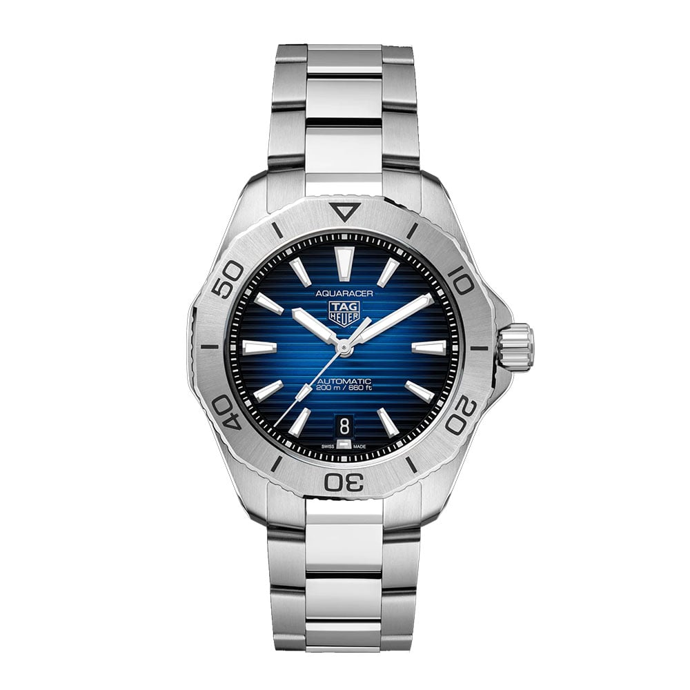 The 40mm case and bold dial of this TAG Heuer Aquaracer makes it an essential ally in your achievement, a heavy-duty diver that that is both extremely technical, and offers a style that stands out. It is a tool that can endure any conditions.
