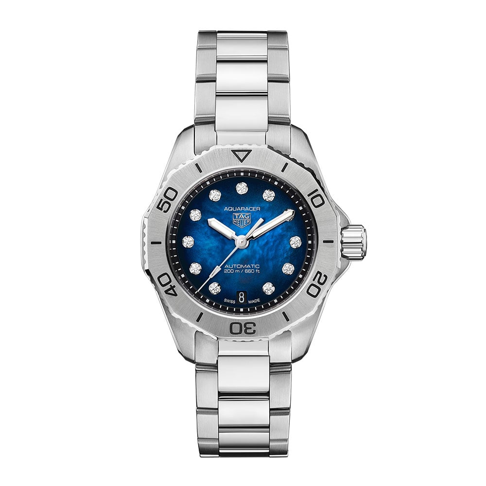 This versatile TAG Heuer Aquaracer is an incentive for going beyond the limits, with tremendously robust construction and unparalleled boldness of design. With 11 VS diamonds (0.107 ct), this is a watch made to take up a challenge.